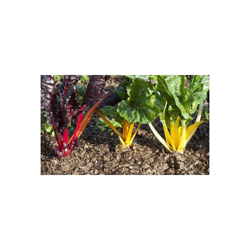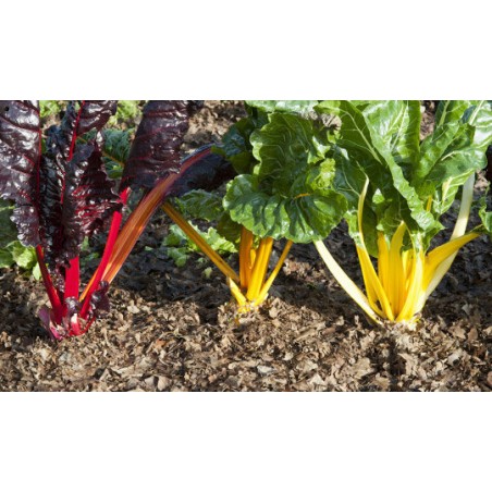 Mélange de cardes jaunes et rouges feuillage vert foncé et vert brillant. Pour mettre de la couleur au potager ! Cardes moins larges que les blettes blanches classiques.